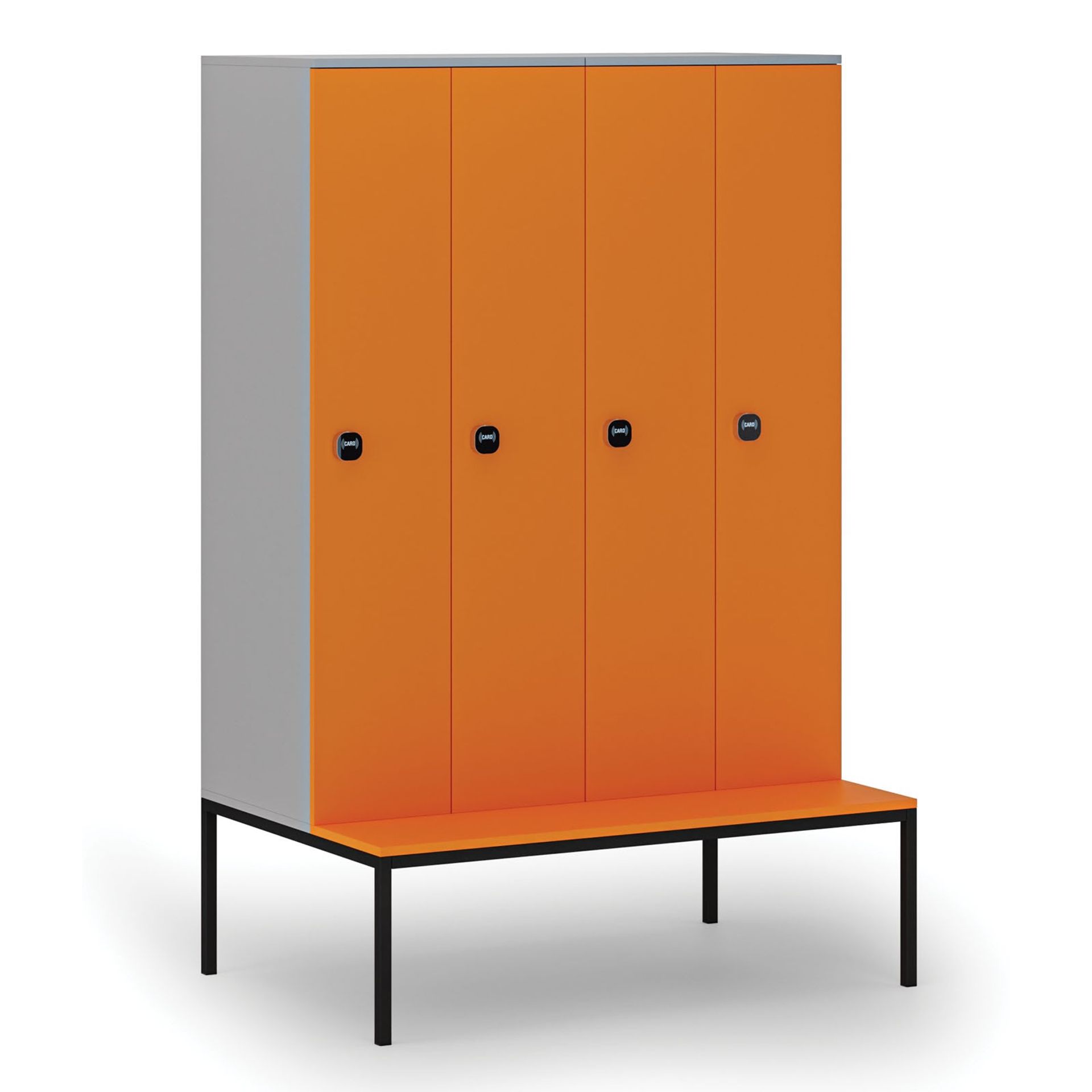 Drevená šatníková skriňa s lavičkou pochádza z našej vlastnej produkcie. Zamerali sme sa predovšetkým na funkčnosť a bezpečnosť. Rohy sú olepené ABS plastovou hranou. Skrini nechýba ventilácia, ktorá je zaistená otvormi v zadnej stene.