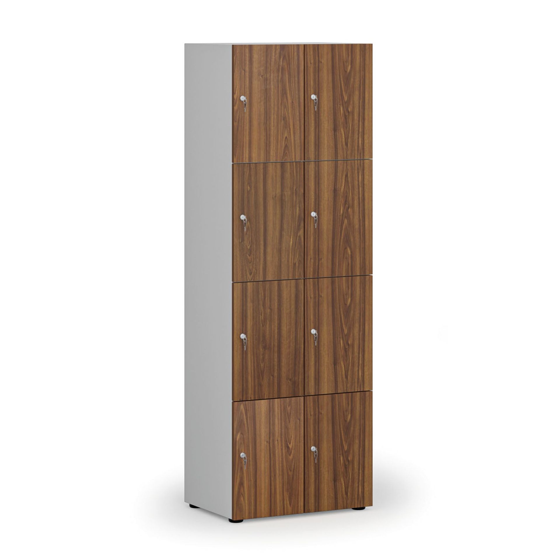 Drevená šatníková boxová skriňa pochádza z našej vlastnej produkcie. Zamerali sme sa predovšetkým na funkčnosť a bezpečnosť. Rohy sú olepené ABS plastovou hranou. Skrini nechýba ventilácia, ktorá je prvotne zaistená otvormi v zadnej stene (okrem variantov so 6 a 8 boxmi).