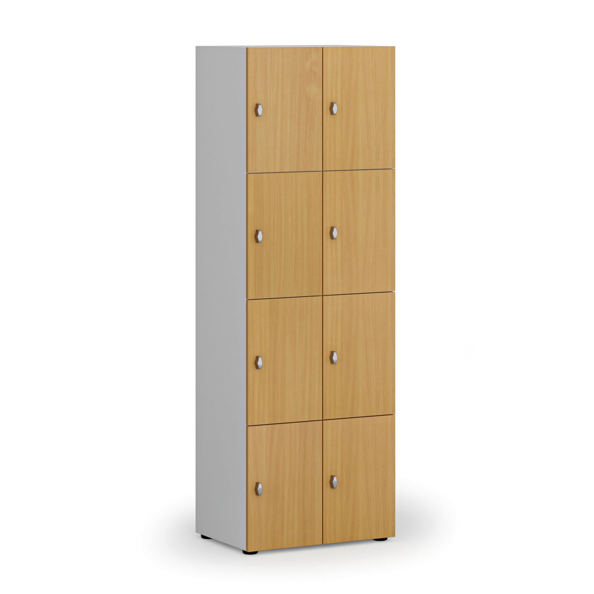 Drevená šatníková boxová skriňa pochádza z našej vlastnej produkcie. Zamerali sme sa predovšetkým na funkčnosť a bezpečnosť. Rohy sú olepené ABS plastovou hranou. Skrini nechýba ventilácia, ktorá je prvotne zaistená otvormi v zadnej stene (okrem variantov so 6 a 8 boxmi).