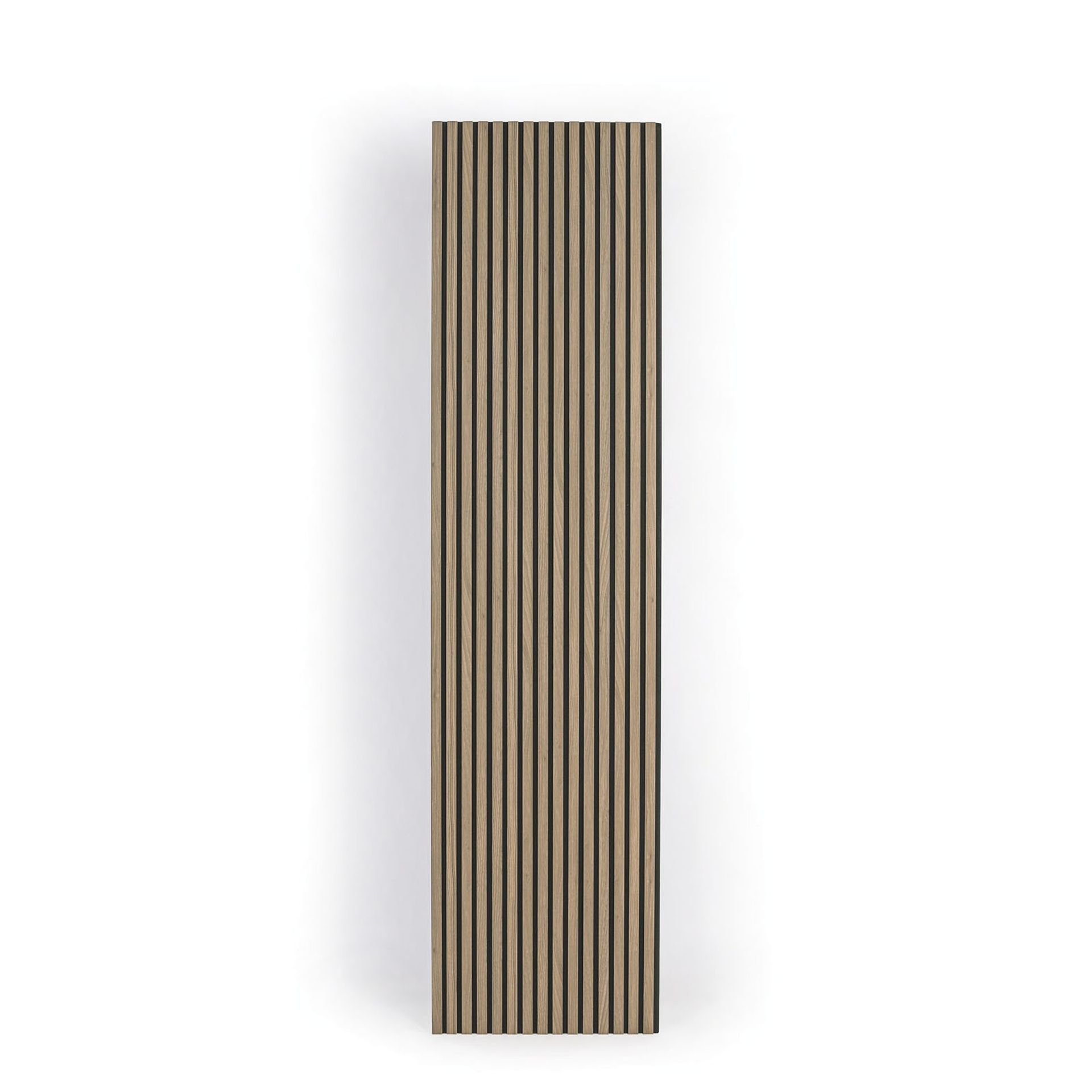 Aby akustické panely skvele zapadli do moderných interiérov, v ktorých je kladený dôraz na dizajn a estetiku, je 9 mm hrubý polyesterový panel obložený 27 mm širokými a 12 mm hrubými MDF lamelami a rozostup medzi nimi činí 13 mm.