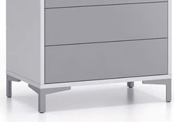 Kancelárska komoda je postavená na kvalitných lesklých chrómových nohách. Chrómové nohy nielen komodu vyzdvihujú, poskytujú jej pevnú podporu, ale sú zároveň aj estetickým doplnkom, ktorý dodáva komode industriálny vzhľad. Aby nedošlo k poškriabaniu podláh sú nohy doplnené aj o priehľadné plastové zátky s rektifikáciou až 10 mm.