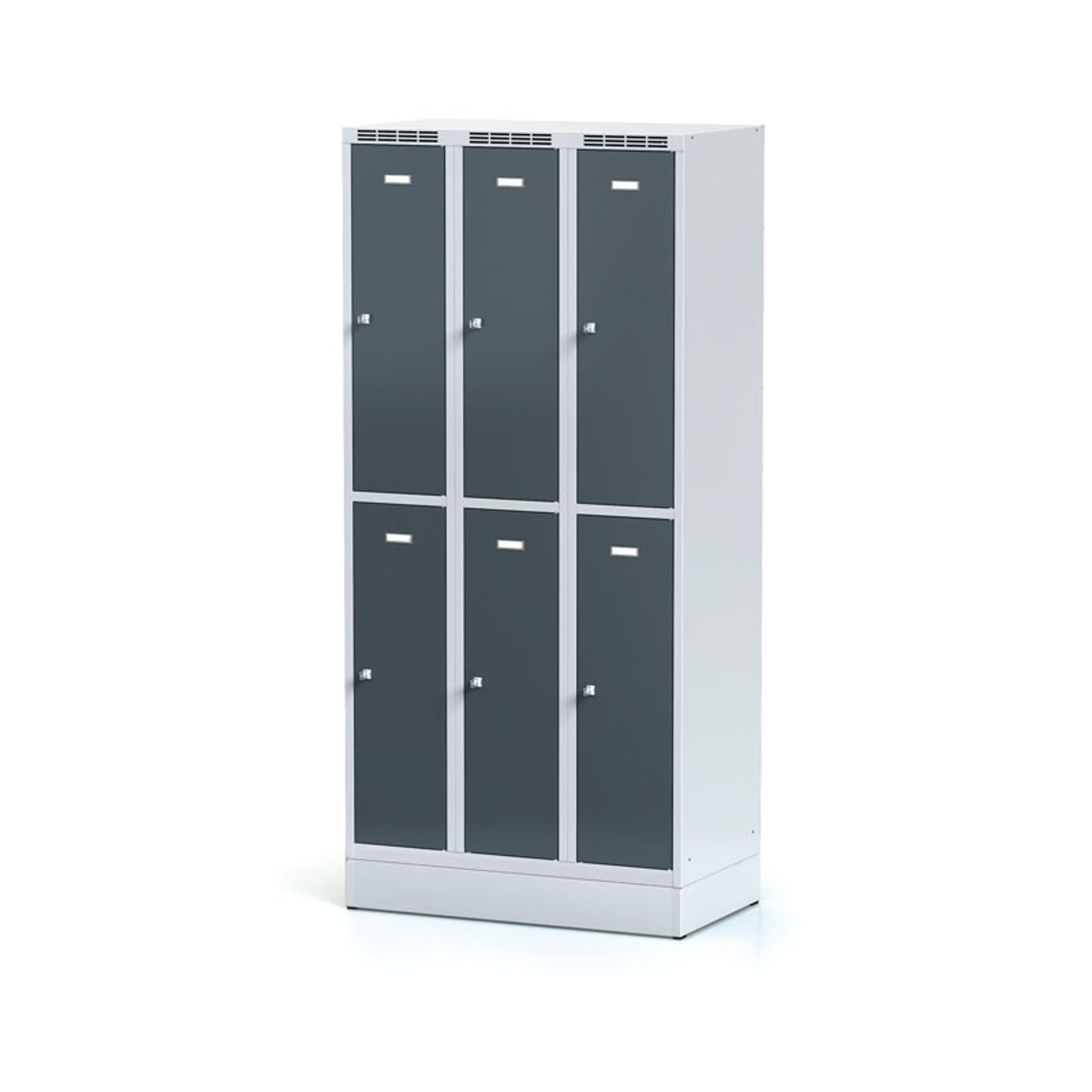 Skrinka so šírkou 300 mm tvorí 6 uzamykateľných boxov. Každý box poskytuje dostatok miesta na uloženie osobných vecí, batohov či tašiek. Toto úsporné a pritom bezpečné, uzamykateľné riešenie je ideálne všade tam, kde je potrebné šetriť miestom a zároveň nie je nutné zavesovať dlhšie odevy.