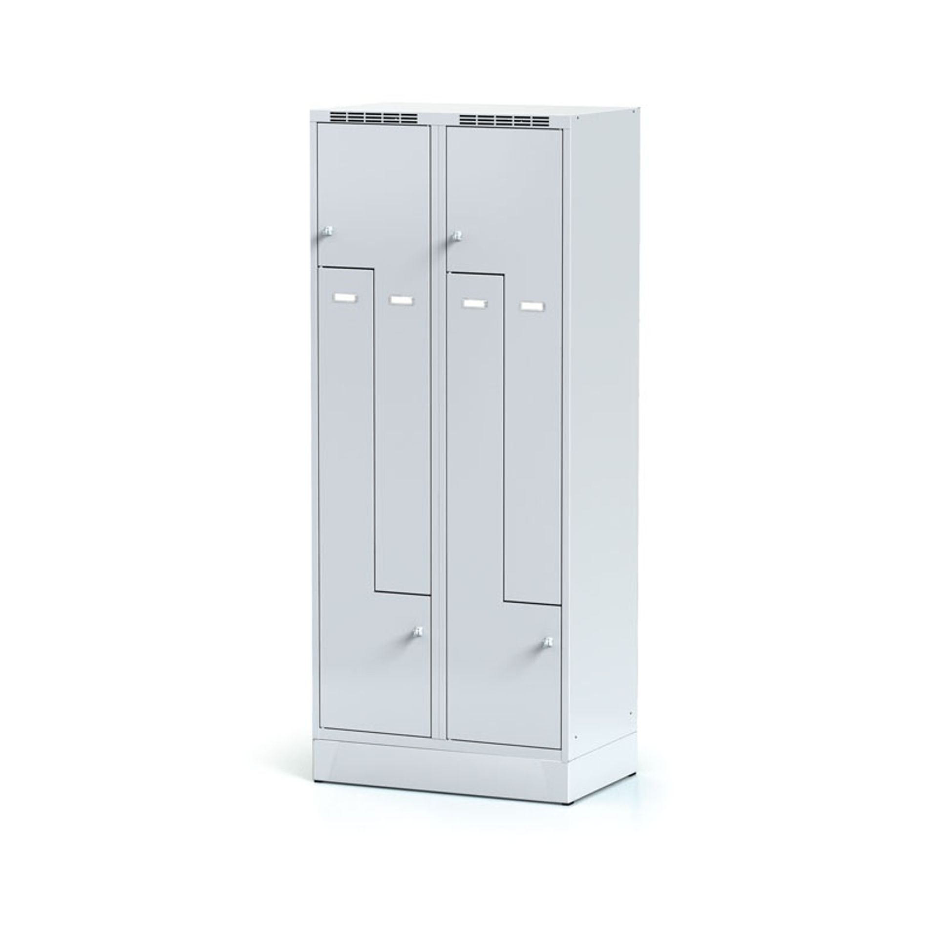 Skrinka typu Z šikovne rozdeľuje priestor jedného oddielu (šírka 400 mm) na hornú a dolnú časť, pričom každá slúži ako samostatne uzamykateľný úložný priestor. Skrinka so Z dverami je ideálna pre 2 osoby alebo ako alternatíva k širokým skrinkám s medzistenou, kde je možné oddeliť civilný a pracovný odev. Oproti klasickým skrinkám je však potrebné pri skrinke Z počítať s o niečo nižšou výškou na zavesenie odevov - cca 1000 mm.