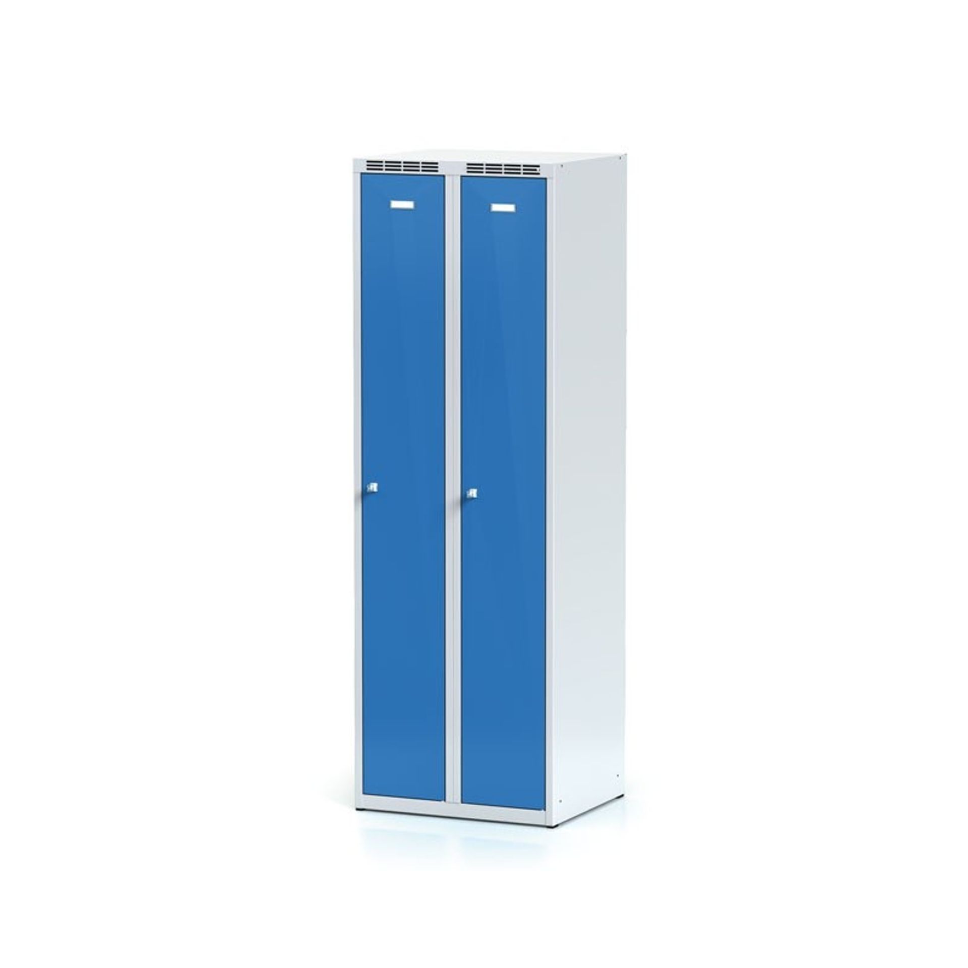 Skrinku tvoria 2 samostatné časti so štandardnou šírkou oddielu 300 mm. Tento klasický typ skrinky je najbežnejšou voľbou pre školy, firmy aj športové zariadenia. Ponúka dostatok priestoru pre osobné veci aj odevy.
