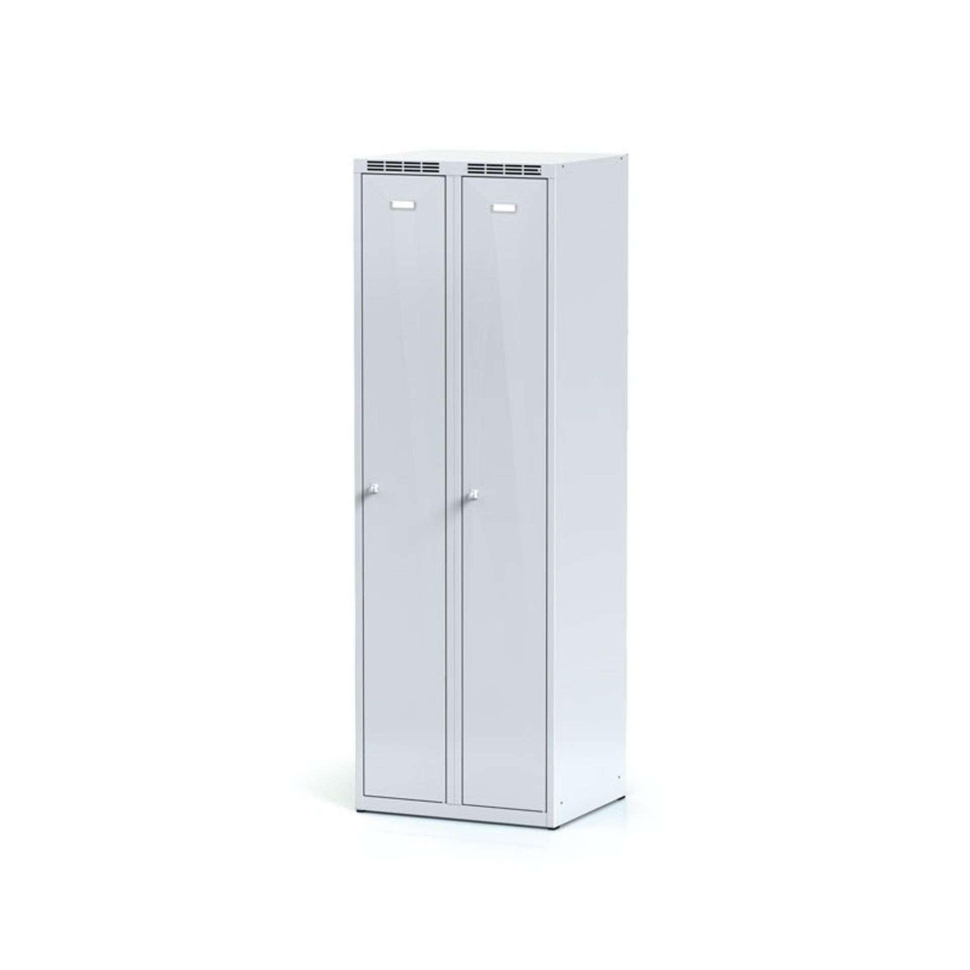 Skrinku tvoria 2 samostatné časti so štandardnou šírkou oddielu 300 mm. Tento klasický typ skrinky je najbežnejšou voľbou pre školy, firmy aj športové zariadenia. Ponúka dostatok priestoru pre osobné veci aj odevy.