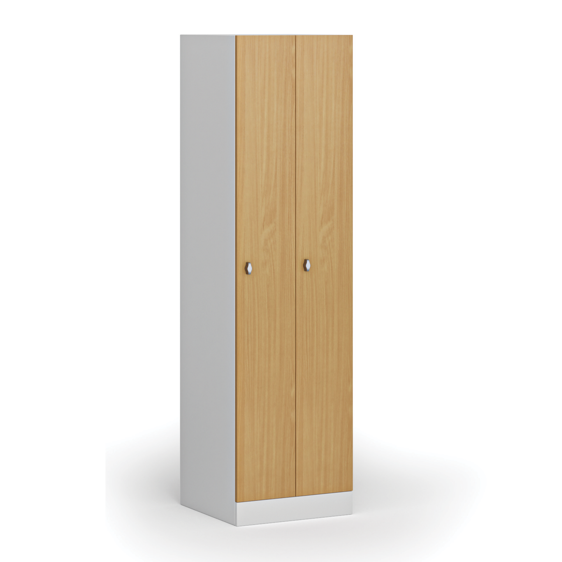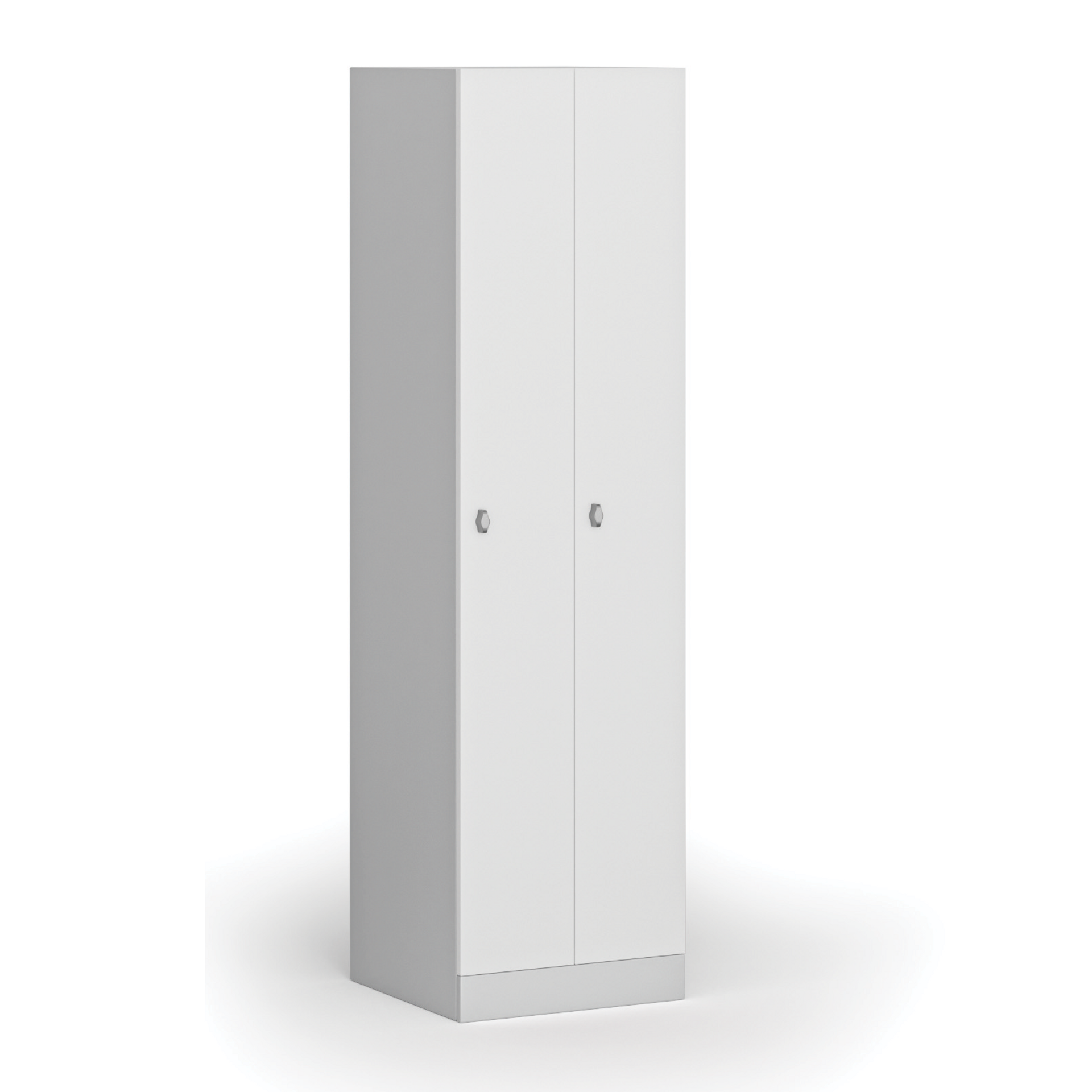 /Šatne a sociálne zariadenie/Šatníkové skrinky/Šatníkové skrinky zúžené/Kovová šatníková skrinka zúžená, 2 oddiely, 1850 x 500 x 500 mm, otočný zámok, laminované dvere, biela