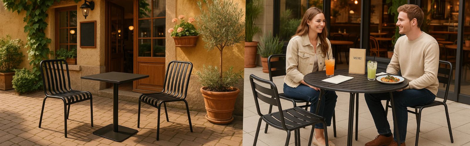 Vybrané kovové stolíky je možné ľahko doplniť o celokovové bistro stoličky RENO a RIVA, ktoré kombinujú moderný vzhľad s praktickými vlastnosťami. Oba modely stoličiek majú stohovateľnú konštrukciu, vysokú nosnosť a ľahko sa udržujú. K dispozícii tiež v grafitovej, béžovej a zelenej farbe: