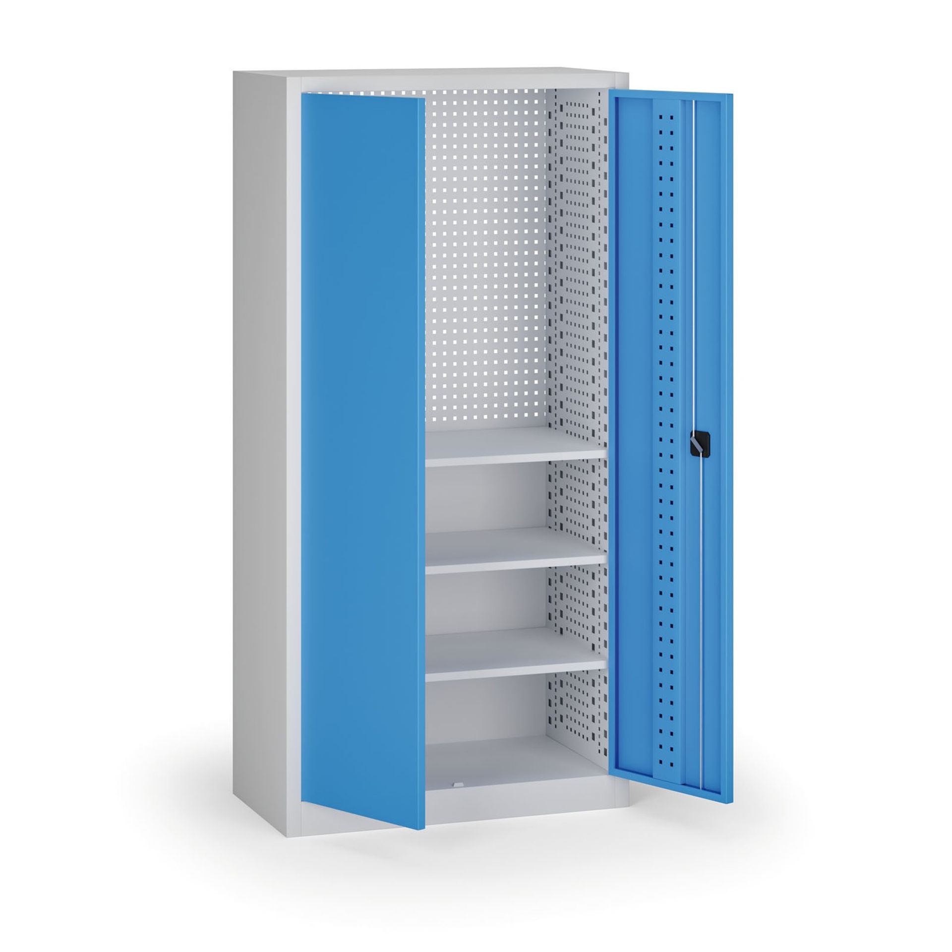 Policová dielenská skriňa 2-dverová, 3 police, 1950 × 950 × 500 mm, modré dvere