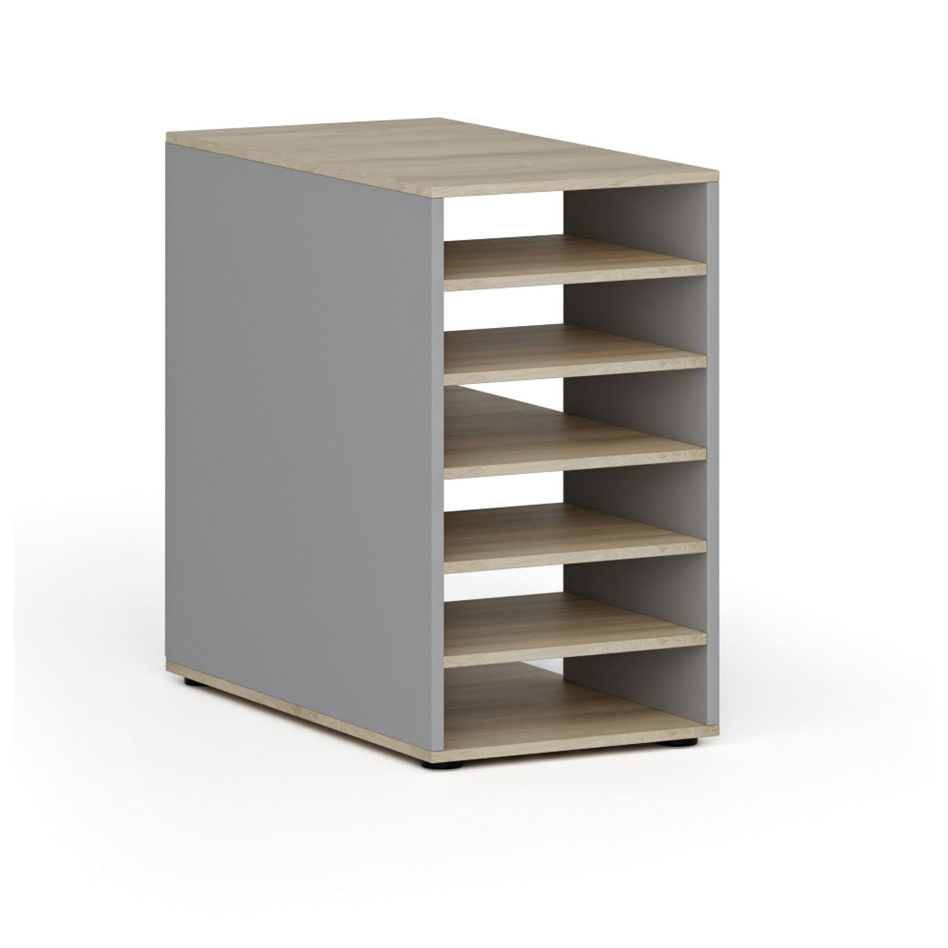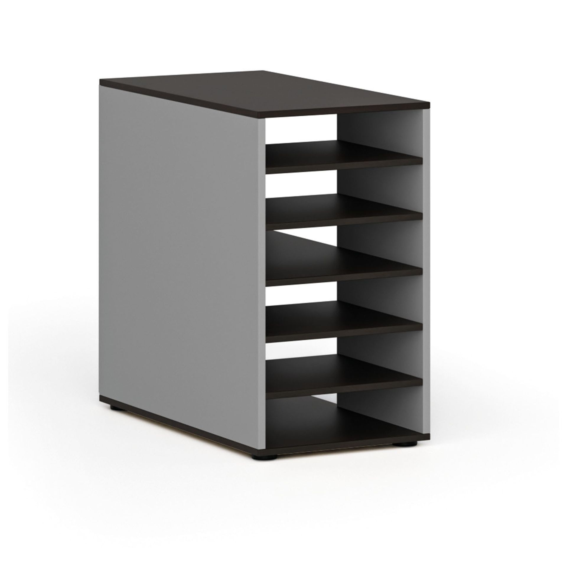 /Kancelársky nábytok/Kolekcie kancelárskeho nábytku/Kancelársky nábytok PRIMO GRAY/Regály a knižnice PRIMO GRAY/Prístavná policová skrinka k pracovnému stolu PRIMO GRAY, pravá, sivá/wenge