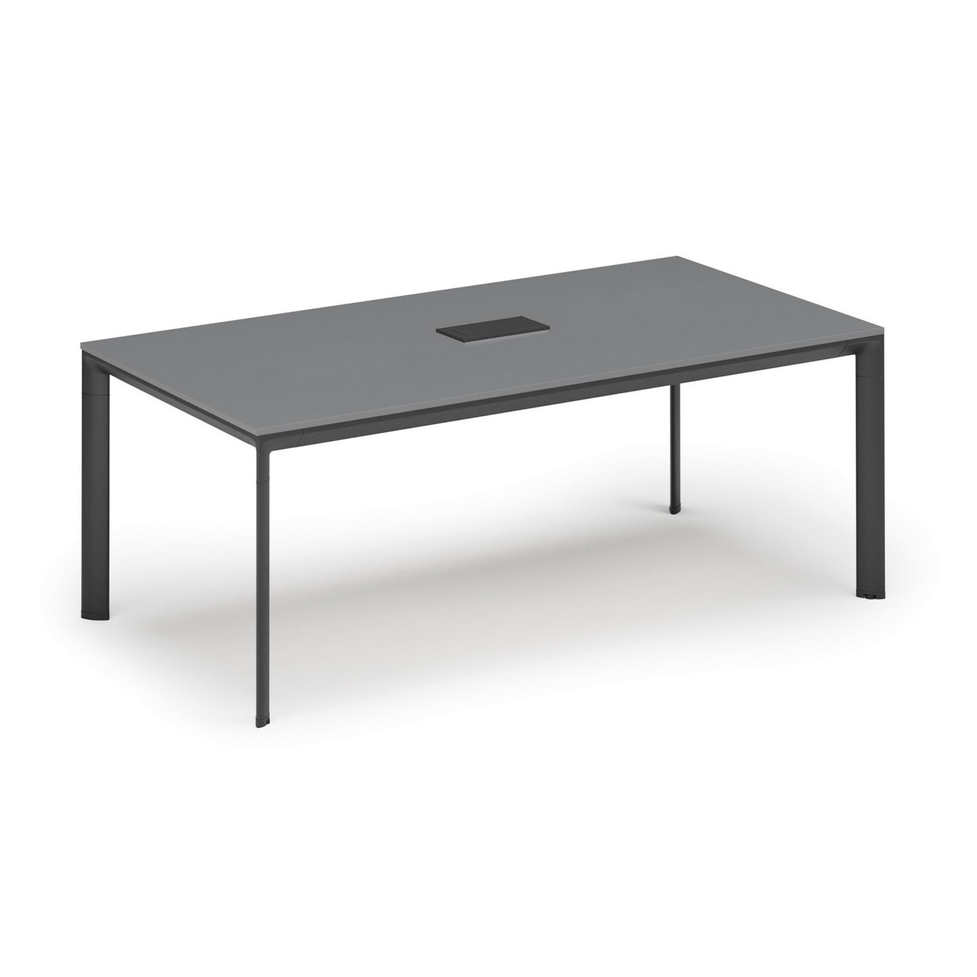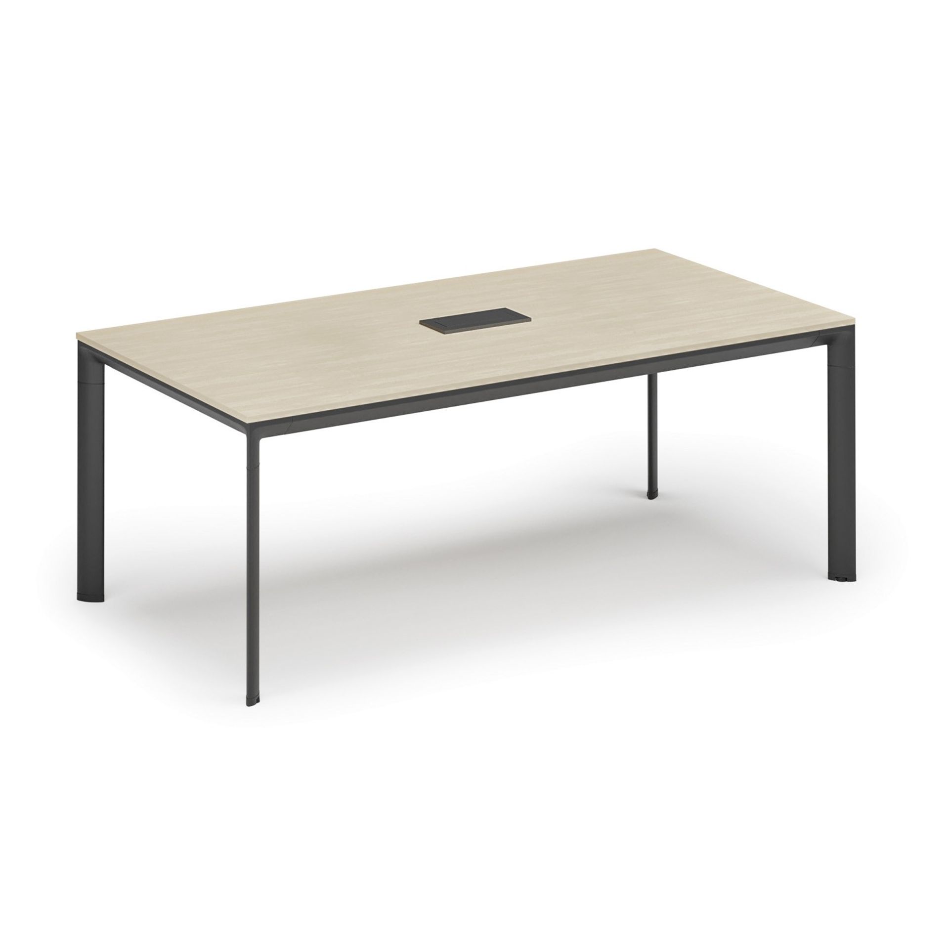 Rokovací stôl PRIMO INVITATION, 200x100 cm, breza + stolná zásuvka TYP III, čierna