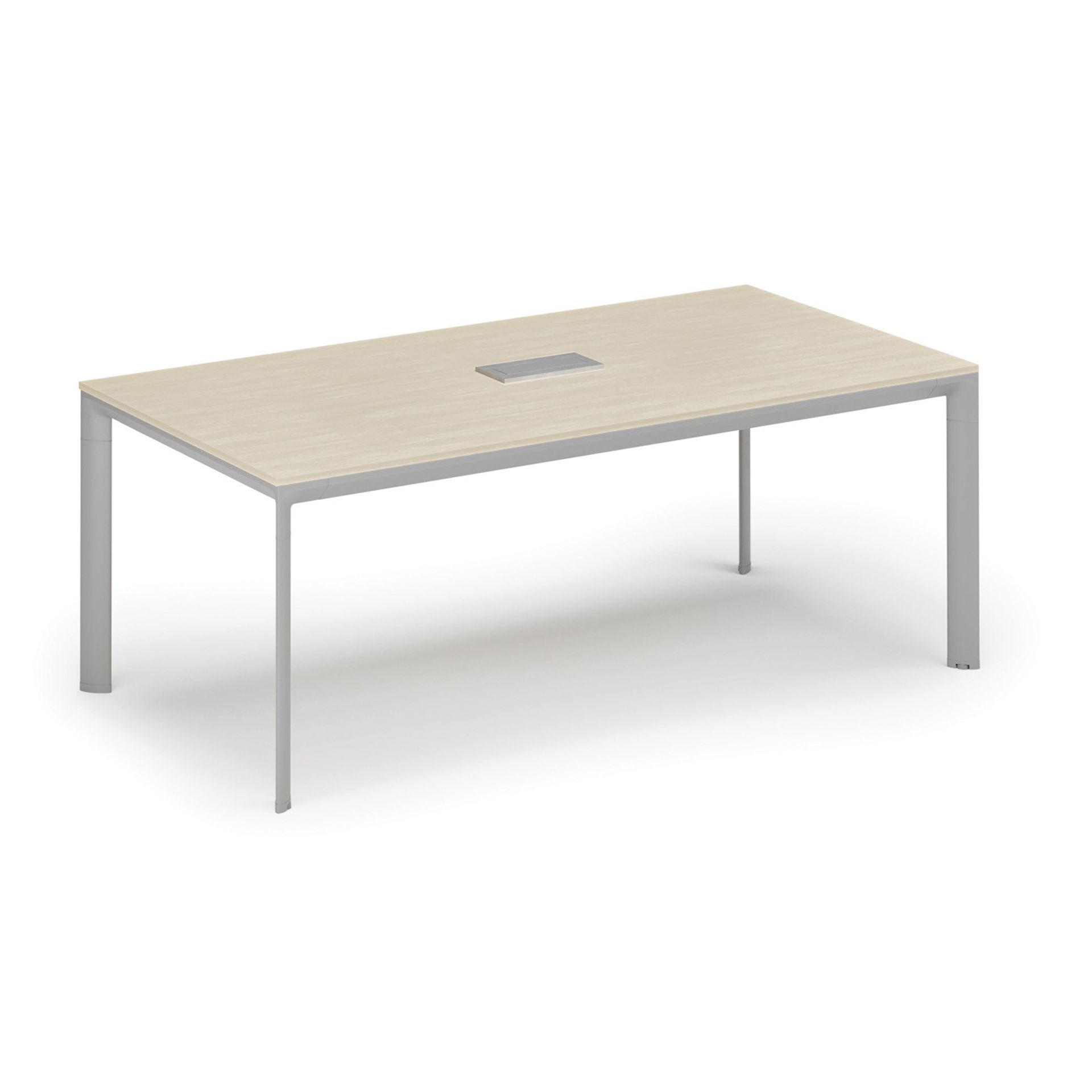 Privítajte svojich obchodných partnerov pri moderných stoloch PRIMO INVITATION. Stoly PRIMO INVITATION vďaka svojmu modernému vzhľadu a veľkej šírke skvele zapadnú do modernej reprezentačnej kancelárie aj rokovacej miestnosti. Hlavnú dominantu stolov tvoria robustné skosené kovové profily nôh, ktoré dodávajú stolom nadmieru stability. Voliť môžete sivo-strieborné alebo čierne prevedenie nôh.