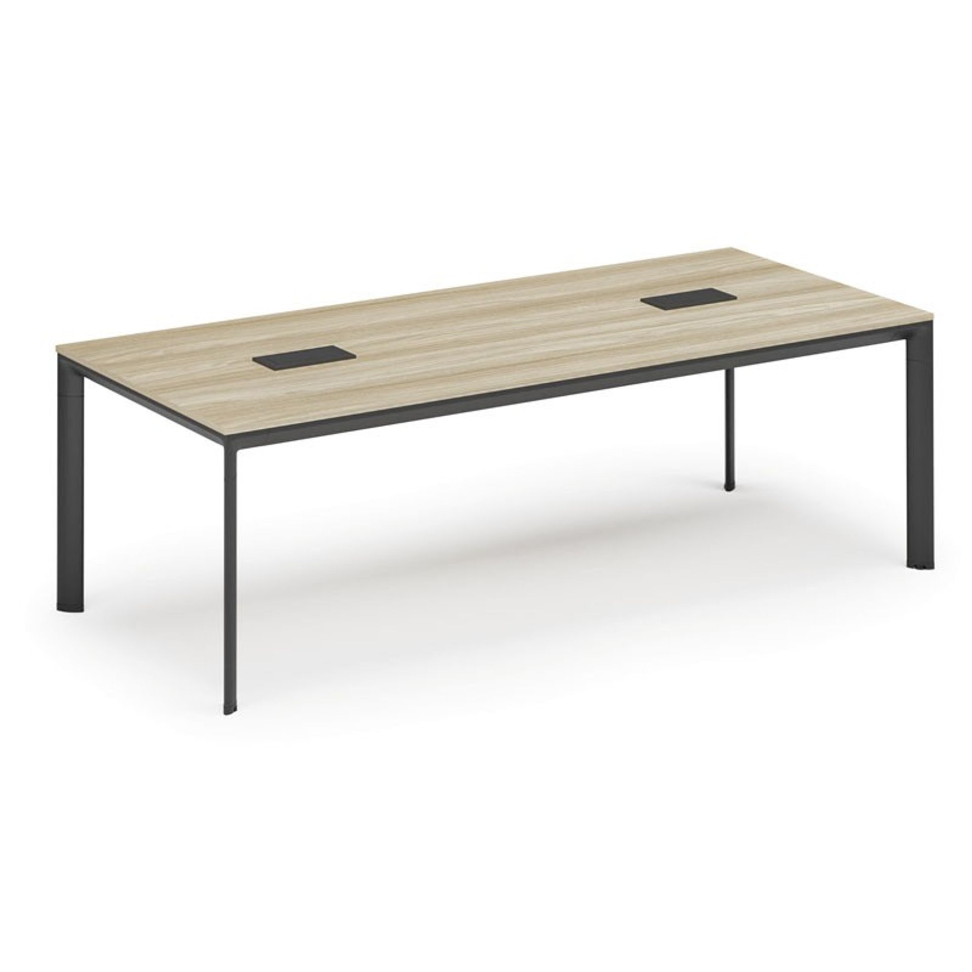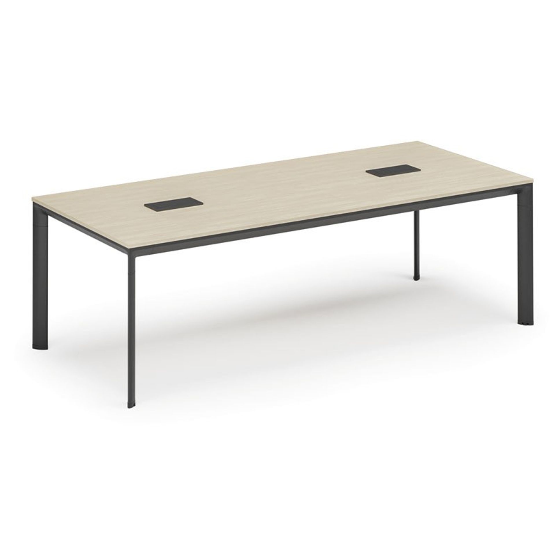 /Kancelársky nábytok/Kolekcie kancelárskeho nábytku/Kancelársky nábytok PRIMO WOOD/Stoly PRIMO WOOD/Stoly s kovovými nohami PRIMO WOOD/Rokovací stôl PRIMO INVITATION, 240x120 cm, breza + 2x stolná zásuvka TYP VI, čierna