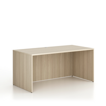 Pracovné stoly FRAME spájajú čistý dizajn, odolnú konštrukciu a pocit súkromia aj v zdieľaných priestoroch. Stabilná doska z laminovanej drevotriesky s 2mm ABS hranou a čelným krycím panelom zaisťuje odolnosť aj elegantný, jednotný vzhľad. Každý stôl je navyše vybavený kovovou káblovou priechodkou na skryté vedenie káblov a rektifikovanými nohami.