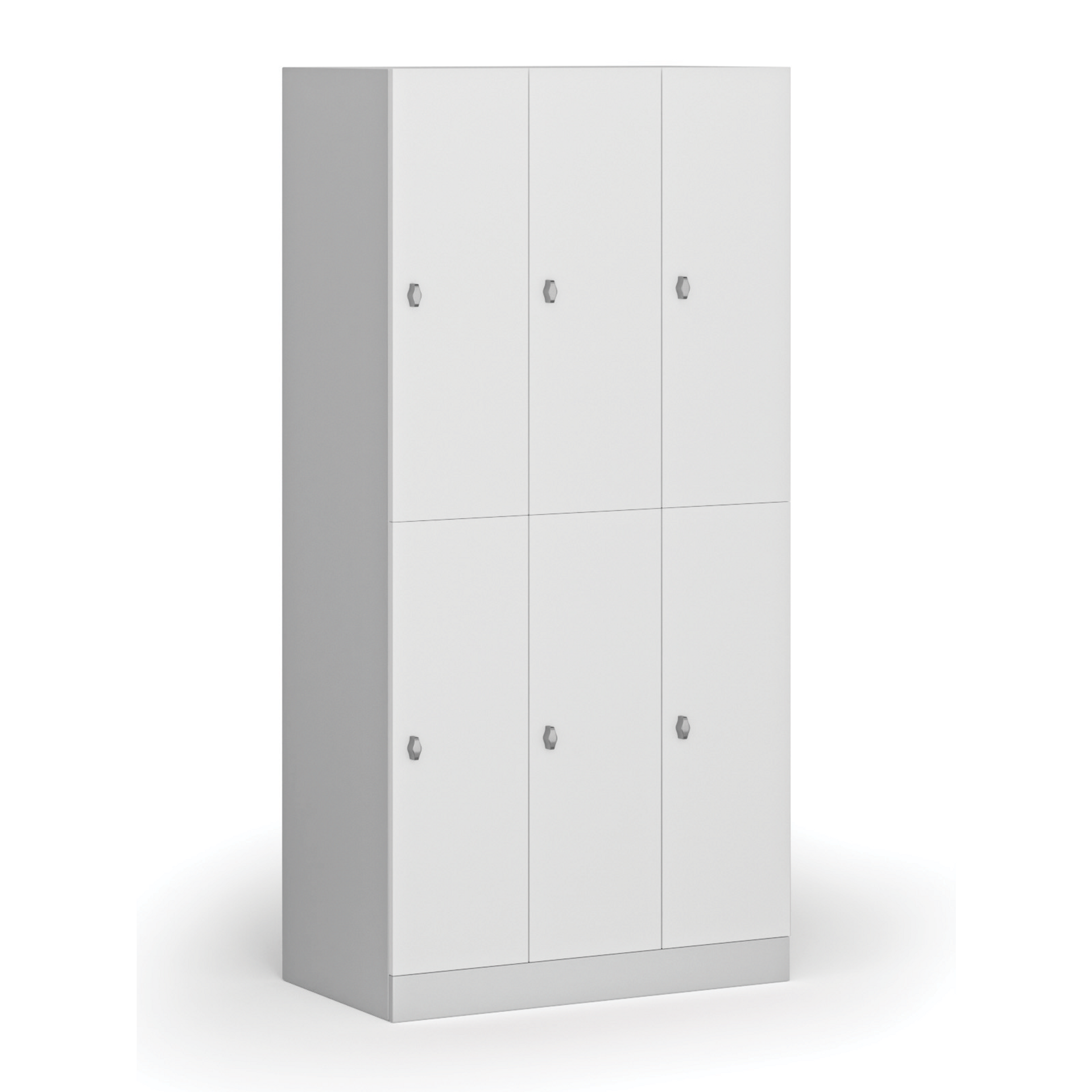 Skrinku so šírkou 300 mm tvorí 6 uzamykateľných boxov. Každý box poskytuje dostatok miesta na uloženie osobných vecí, batohov či tašiek. Toto úsporné a pritom bezpečné, uzamykateľné riešenie je ideálne všade tam, kde je potrebné šetriť miestom a zároveň nie je nutné zavesovať dlhšie odevy.
