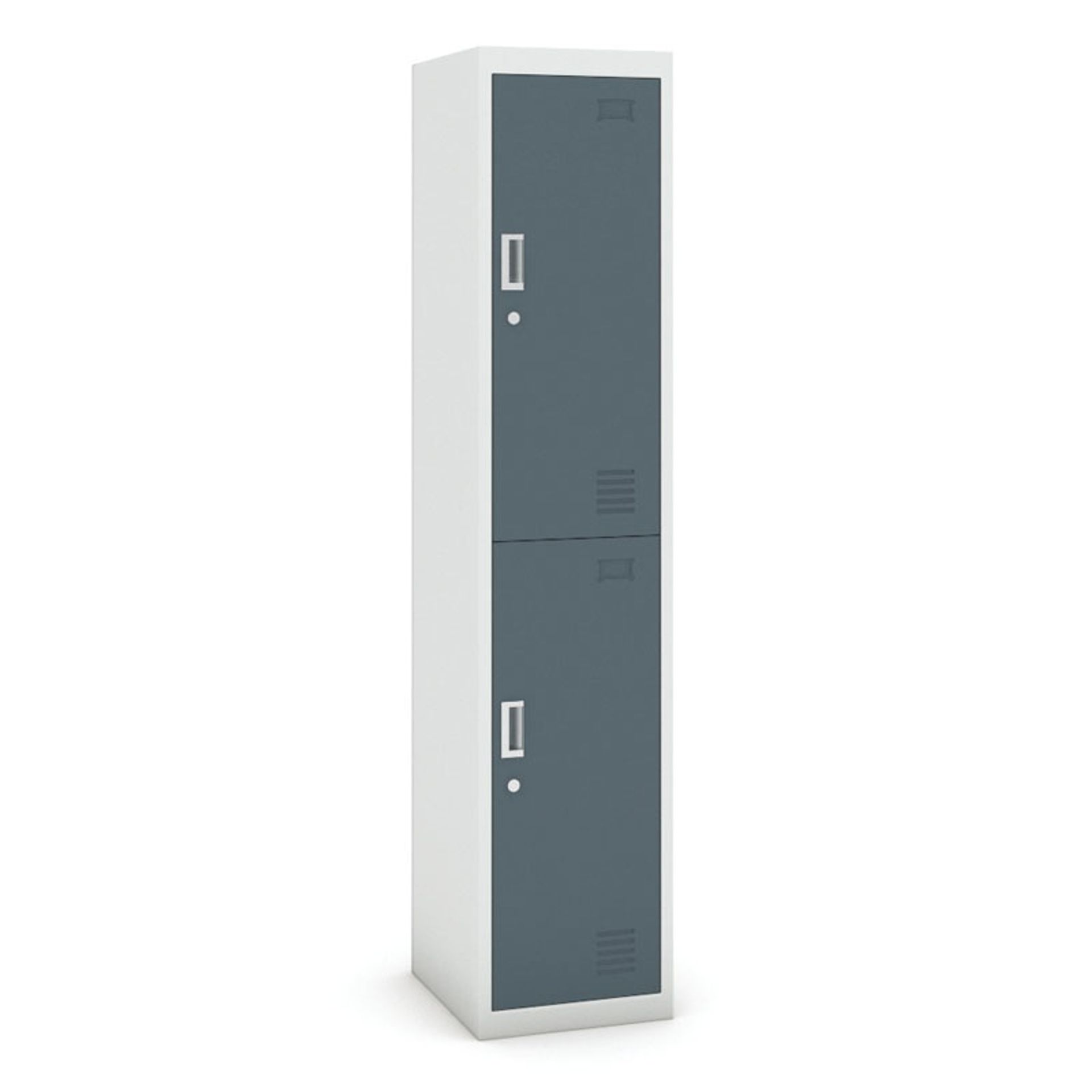 Skrinka so šírkou 380 mm tvorí 2 uzamykateľné boxy. Každý box poskytuje dostatok miesta na uloženie osobných vecí, batohov či tašiek. Toto úsporné a pritom bezpečné, uzamykateľné riešenie je ideálne všade tam, kde je potrebné šetriť miestom a zároveň nie je nutné zavesovať dlhšie odevy.