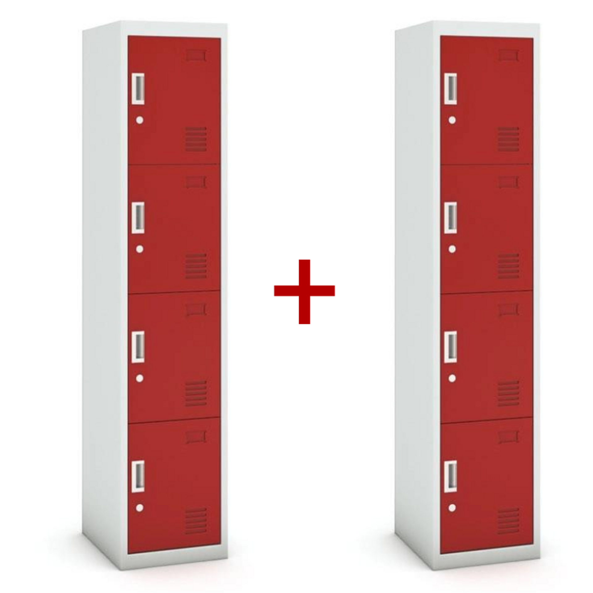 Skrinka so šírkou 380 mm tvorí 4 uzamykateľné boxy. Každý box poskytuje dostatok miesta na uloženie osobných vecí, batohov či tašiek. Toto úsporné a pritom bezpečné, uzamykateľné riešenie je ideálne všade tam, kde je potrebné šetriť miestom a zároveň nie je nutné zavesovať dlhšie odevy.