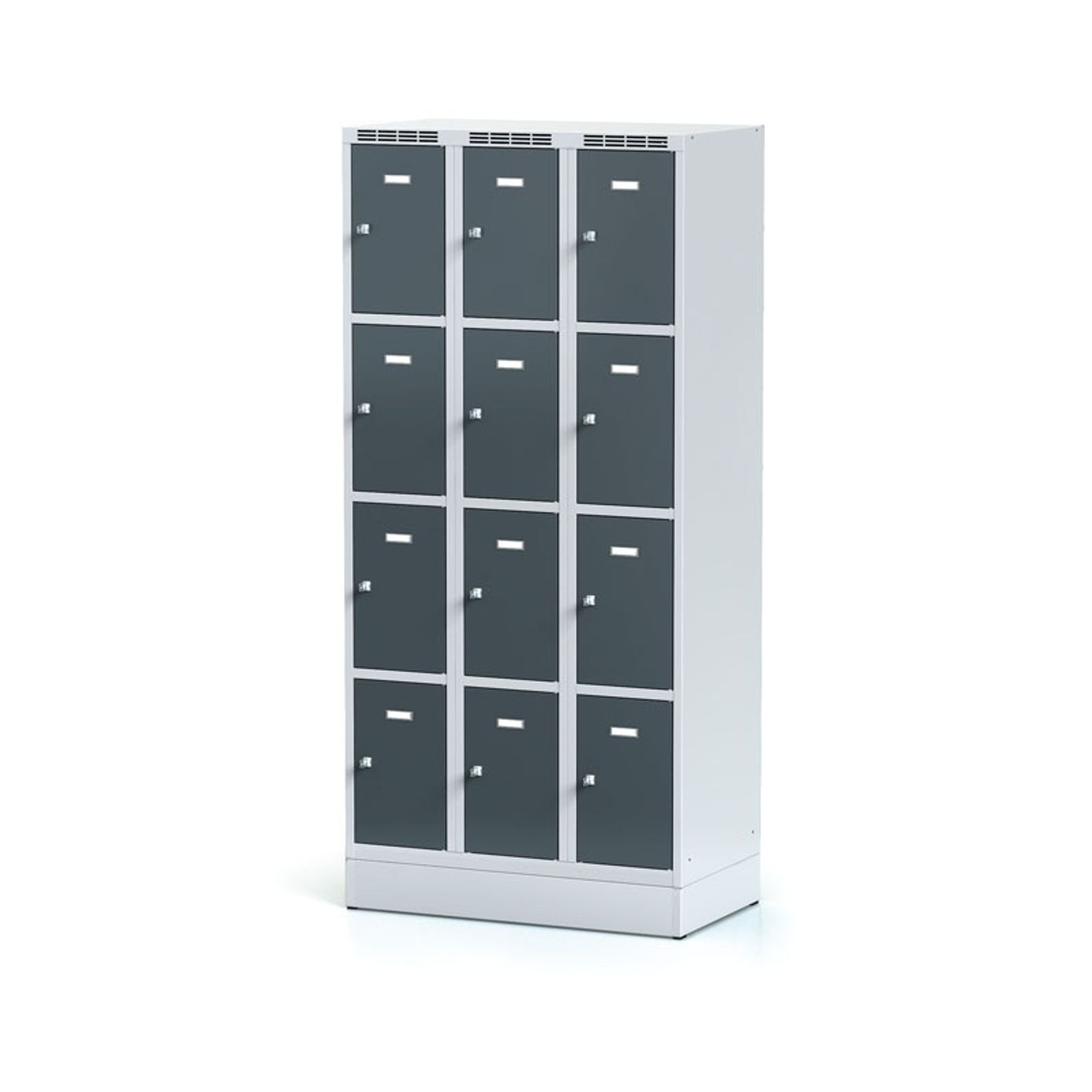 Skrinka so šírkou 300 mm tvorí 12 uzamykateľných boxov. Každý box poskytuje dostatok miesta na uloženie osobných vecí, batohov či tašiek. Toto úsporné a pritom bezpečné, uzamykateľné riešenie je ideálne všade tam, kde je potrebné šetriť miestom a zároveň nie je nutné zavesovať dlhšie odevy.