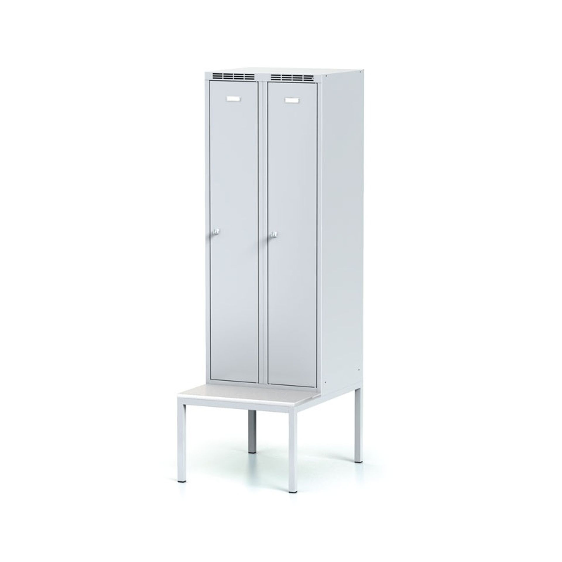 Základňu tvorí kovová lavička vysoká 375 mm s laminovaným sedadlom (hĺbka 300 mm). Umožňuje pohodlné sedenie aj prezliekanie priamo pri skrinke a šetrí miesto, ktoré by inak zabrala samostatná lavica.