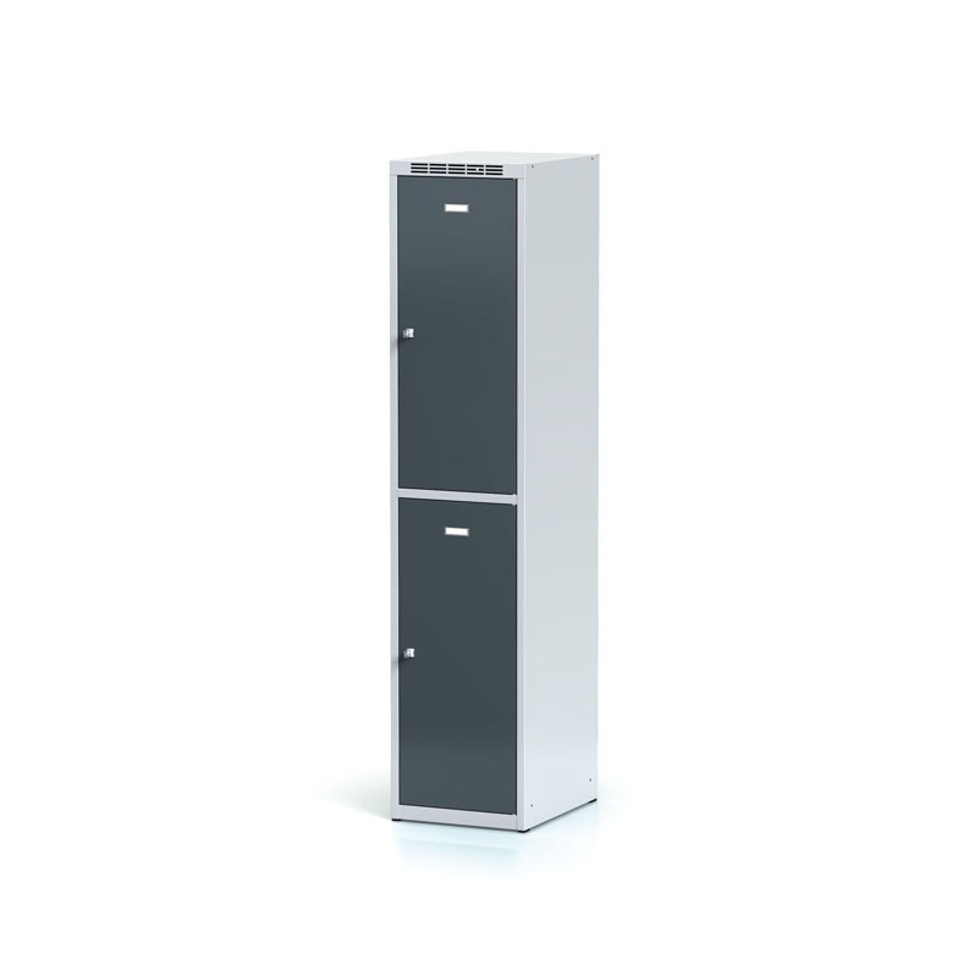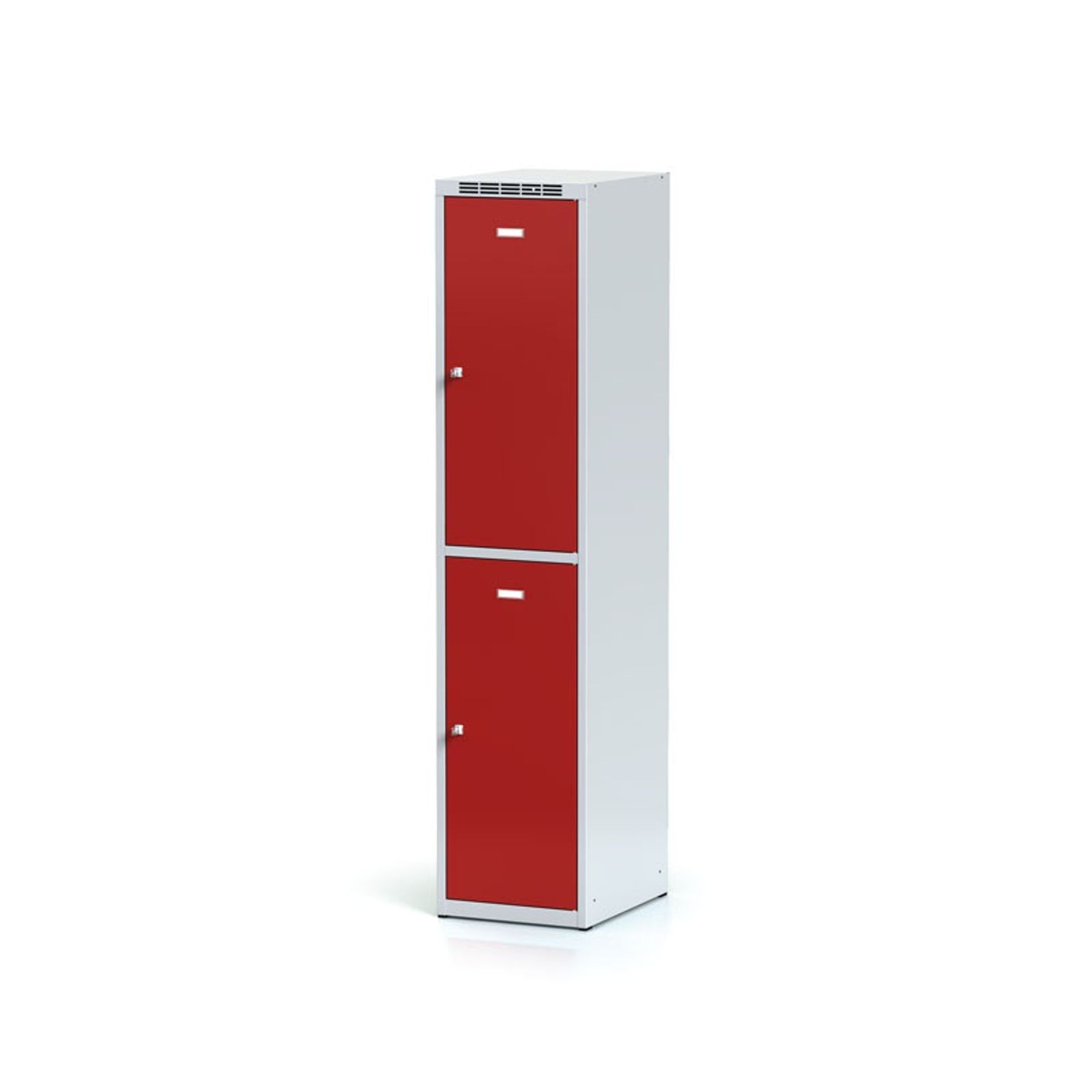 Potrebujete umiestniť väčšie množstvo šatňových skriniek pre zamestnancov, návštevníkov, žiakov či študentov a máte k dispozícii obmedzené priestory? Riešením sú šatňové skrinky s 2 oddiely nad sebou. Tieto skrinky sa skvele hodí napríklad do škôl, športových hál, fitcentier, kde sa nepredpokladá skladovania pracovného oblečenia. Každý oddiel je vysoký cca 850 mm a je vybavený šatníkovou tyčou s 2 háčiky. Dokúpiť možno aj prídavnú policu.