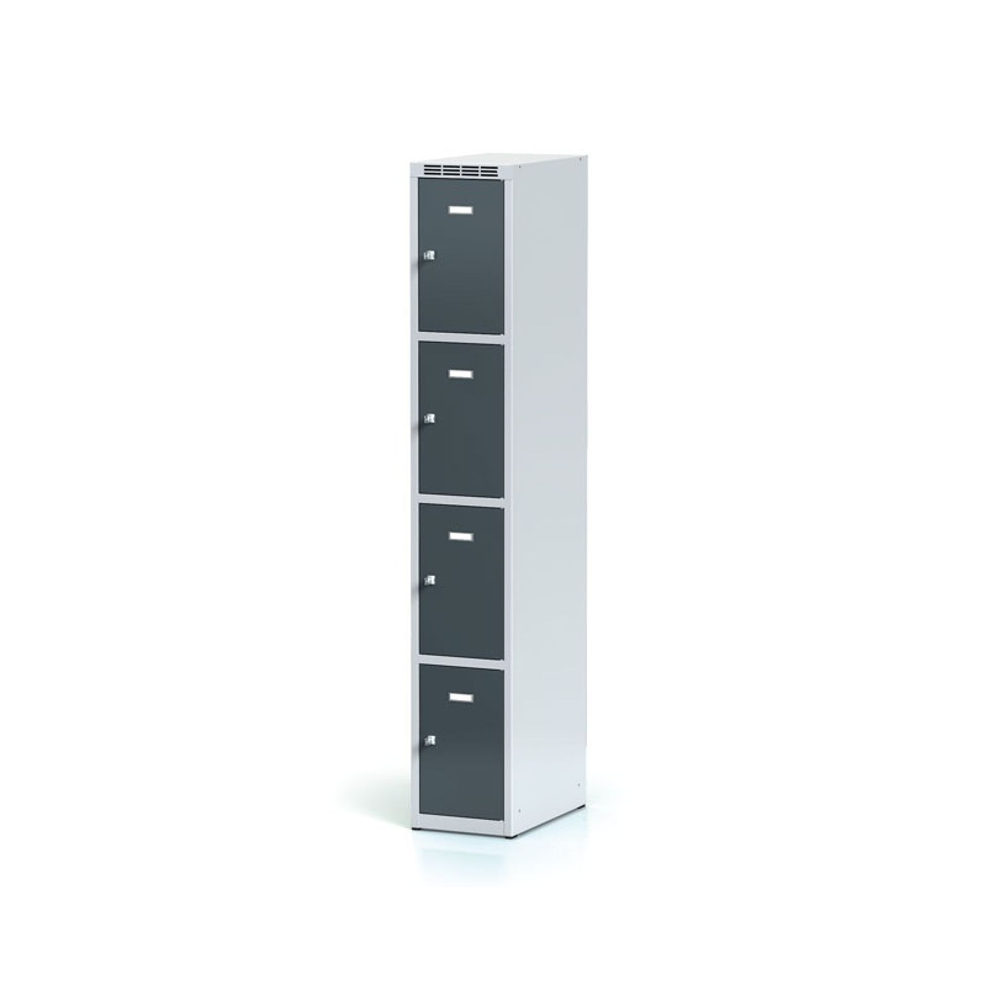 Potrebujete vytvoriť priestor pre bezpečné uloženie vecí pre svojich zamestnancov, návštevníkov, žiakov či študentov? Riešením sú tzv. boxové skrine (skrine s uzamykateľnými schránkami). Tieto skrinky sa skvele hodí napríklad do škôl, športových hál, fitcentier. Vyberte si z niekoľkých veľkostí boxov. Rozmery jednotlivých boxov nájdete v porovnávacej tabuľke.