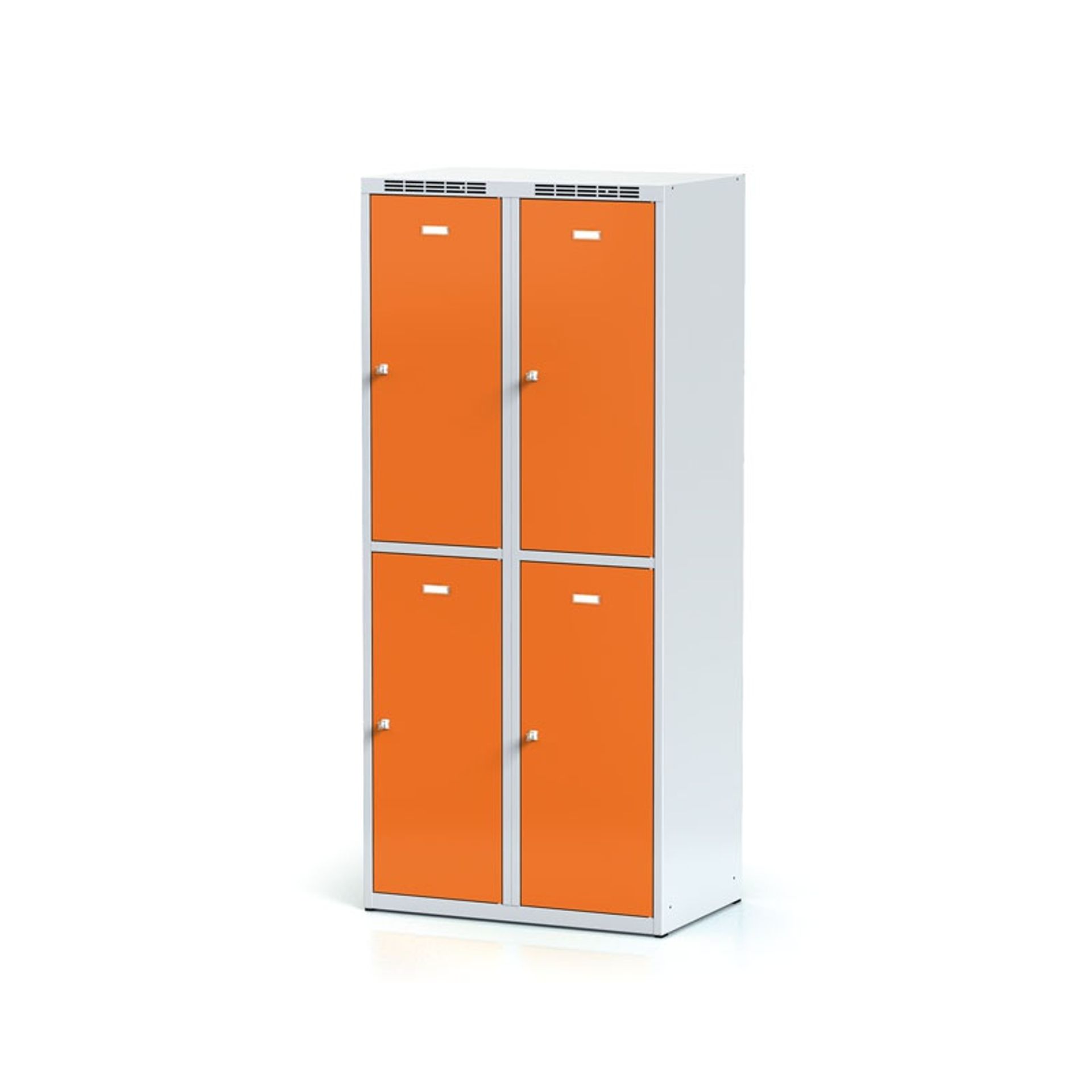 Skrinka so šírkou 400 mm tvorí 4 uzamykateľné boxy. Každý box poskytuje dostatok miesta na uloženie osobných vecí, batohov či tašiek. Toto úsporné a pritom bezpečné, uzamykateľné riešenie je ideálne všade tam, kde je potrebné šetriť miestom a zároveň nie je nutné zavesovať dlhšie odevy.