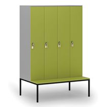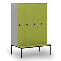 Šatňové skrinky s lavičkami poskytujú priestor na komfortné sedenie pre každého aj v menšom priestore. Šatňové skrinky doplnené o lavičku nájdu svoje uplatnenie ako na pracoviskách, tak v šatniach športových areálov, školách, atď. Šatňové skrinky s lavičkou dodávame v niekoľkých farebných kombináciách a sú vybavené buď cylindrickým, alebo otočným zámkom.
