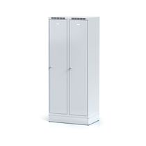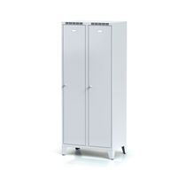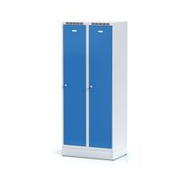 Vďaka vnútornej deliacej ploche nemusíte mať strach, že by Vám civilné oblečenie napríklad napáchlo alebo sa zašpinilo. Môžete si vybrať, či budete chcieť, aby farba dverí bola v antracitovej, červenej, modrej, oranžovej alebo šedej farbe. Okrem toho si môžete zvoliť, či chcete, aby bola Vaša skrinka bez podnože, na sokli alebo na nožičkách.