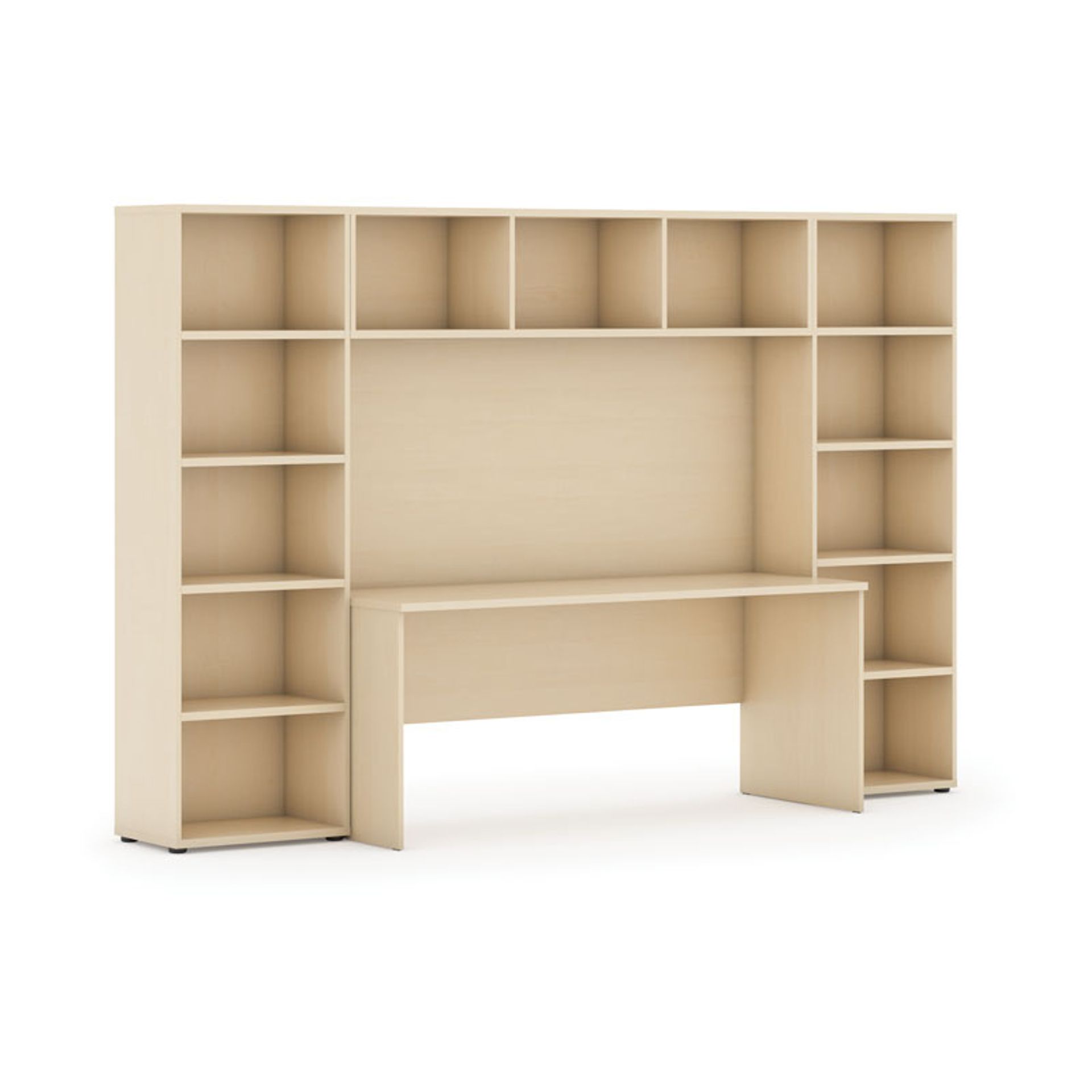 /Kancelársky nábytok/Kancelárske regály, knižnice, police/Knižnice/Knižnice INTEGRO/Zostavy knižníc INTEGRO so stolom, nižšie, 2950 x 700/400 x 1920 mm, buk